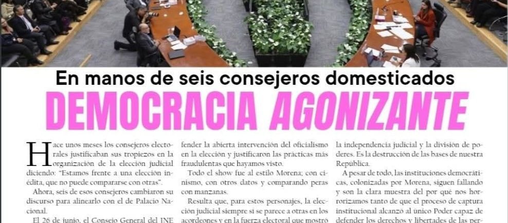 Como sabemos, la reforma judicial surgió solo para que morena y aliados pudieran controlar el Poder Judicial. Cuando cobró vigencia, para muchos, solo quedó la ingenua esperanza de que el INE organizara una elección sin intervención de partidos y aislada del poder público, como ordena la Constitución.